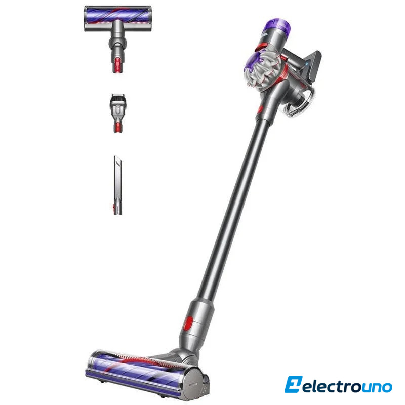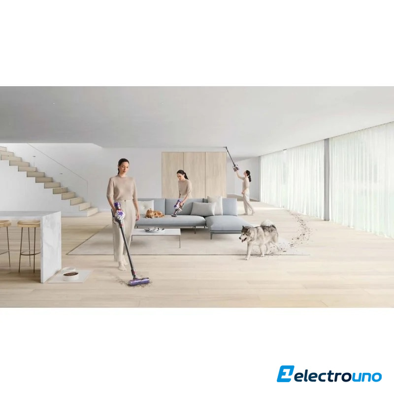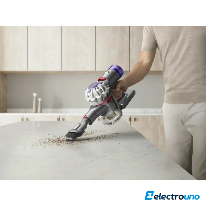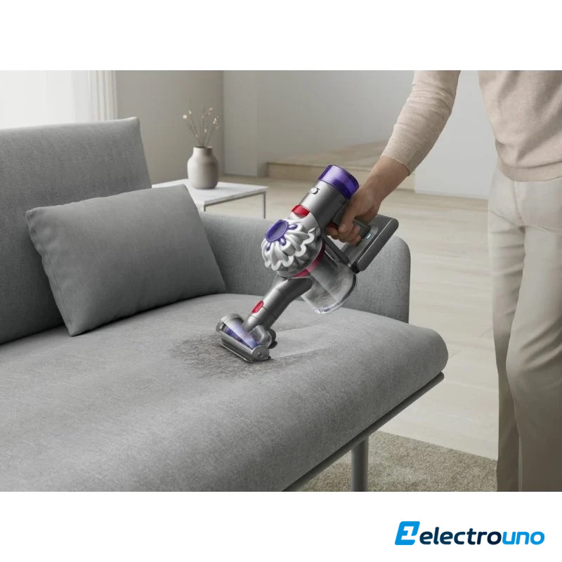 La aspiradora Dyson V8 aspira hasta 40 minutos, ahora con mayor potencia de succión vs. versión anterior. Los cabezales de limpieza adicionales permiten que la aspiradora Dyson V8 se encargue de la suciedad en distintos tipos de suelo y superficies. El sistema de vaciado higiénico del cubo supone una forma más limpia de expulsar la suciedad. Incluye dos accesorios para limpiar en profundidad en todos los rincones del hogar.