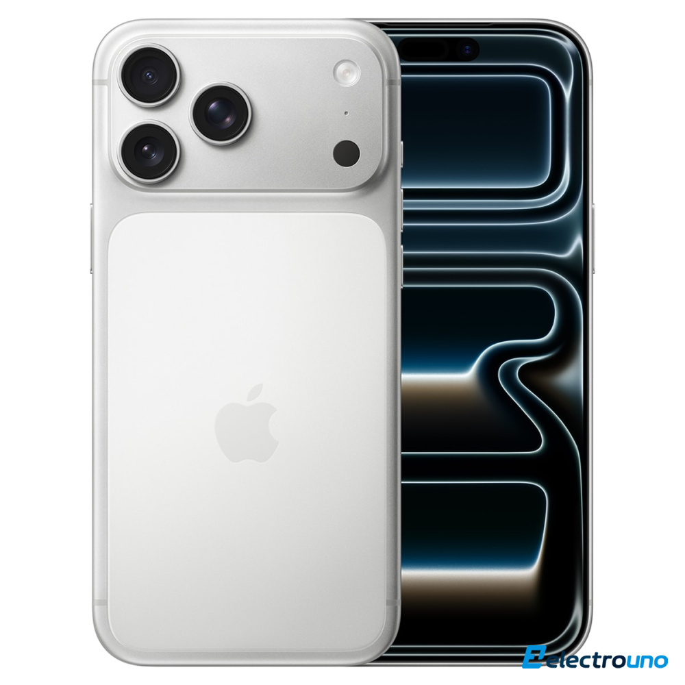 iPhone 17 Pro Max. El iPhone más potente que existe. Espectacular pantalla de 6,9 pulgadas, diseño Unibody de aluminio, chip A19 Pro, tres cámaras traseras de 48 Mpx y una autonomía revolucionaria.
