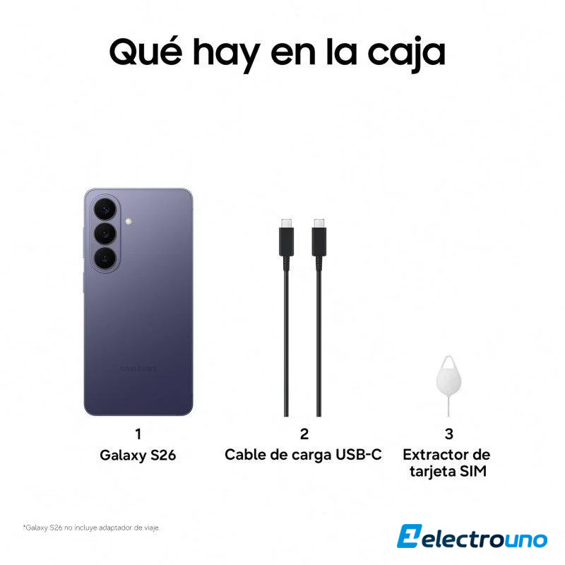 - Galaxy S26, cable USB-C (cargador no incluido)