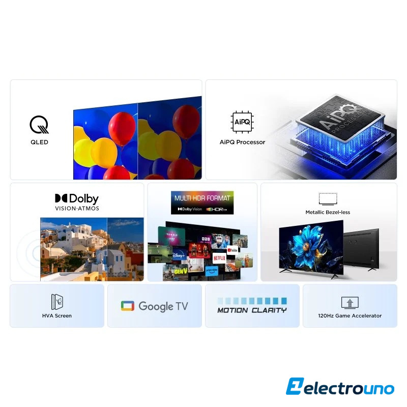 - Tecnología de procesamiento de imagen: TCL AiPQ Processor